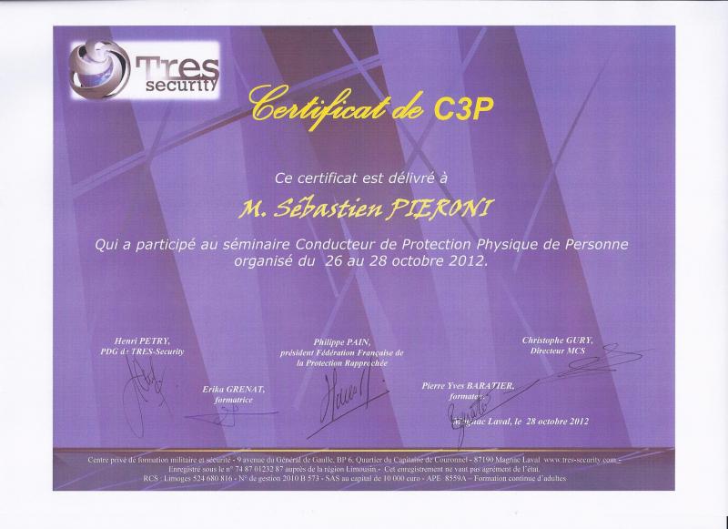Effectivement ce stage prodiqué par des personnes spécialisées dans la sécurité et la protection des personnes ,es gendarmes du GIGN, responsable de société de protection rapproché ainsi que le vice présidents de l 'association des FFEVTC et bien d'autres encore ont donné la certification à la socité SSK